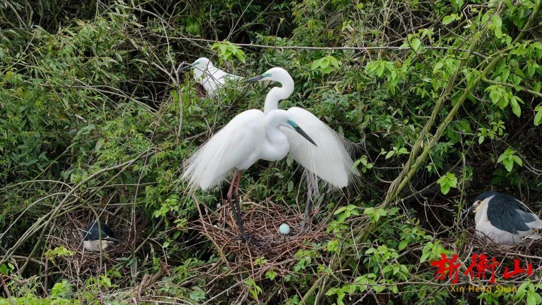 从一枚蛋到翱翔蓝天,鹭鸟宝宝大约需要一个半月的成长期。在这段日子里,亲鸟要不辞辛劳地往返于湿地与山林之间,为雏鸟寻觅鱼虾、遮阳挡雨,直到它们羽翼渐丰、能够独自觅食。而能够让白鹭、夜鹭、牛背鹭这三种习性各异的鹭鸟齐聚于此、安家育雏,背后离不开一个共同的先决条件——优越的生态环境。