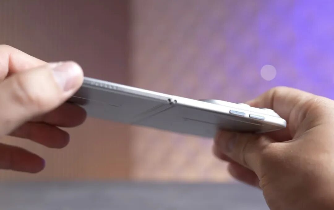并且值得注意的是,iPhone Fold 的两颗音量键放置在了顶部边框。