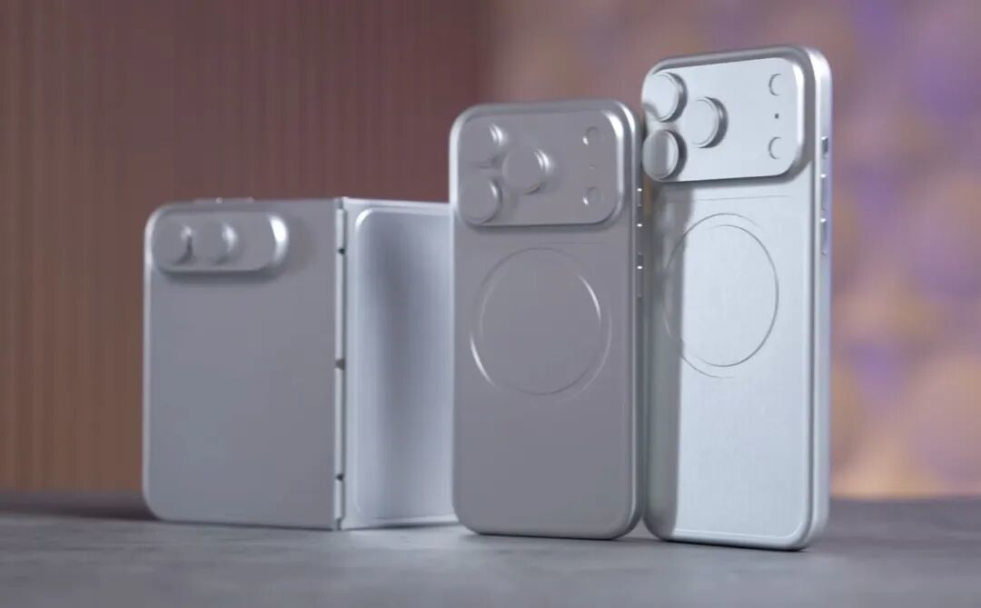 从整体外观来看,iPhone 18 Pro 系列基本延续了 17 Pro 系列的后盖设计,包括尺寸也大差不差,不过细节上会有一些优化。iPhone Fold 使用了横向双摄镜头模组,模组没有占满整个后盖宽度。