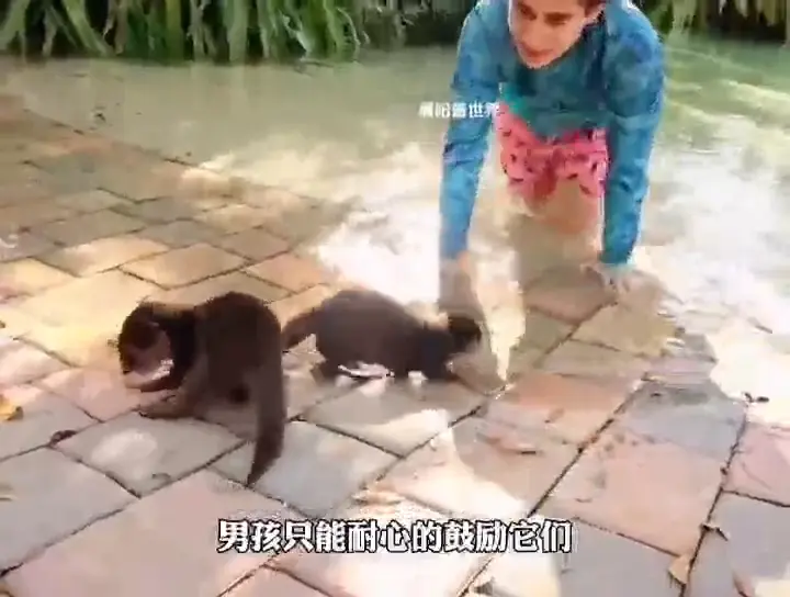 为了让它们尽快适应外界生活,男孩每天都会带它们外出。可两只小水獭胆子出奇的小,一有动静就害怕的往男孩身边靠。为了锻炼它们的胆量,男孩将它们放进了水池里。起初两只水獭还是有点害怕,完全没有半点水生动物该有的样子。直到往里面丢了一个玩具球,两只小家伙才尽情的玩耍起来,足足玩了两小时还不肯起来。